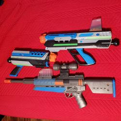 Nerf Alpha Strike Blaster Kit 4 Guns 12 Elite Bullets Large Set Blue & Red 💥 $25Los Angeles, CA