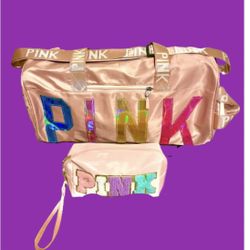 2pc Gift Set “Pink” Gym Duffle Bag & Cosmetic Bag Victorias Secret Colorful$50Irwindale, CA