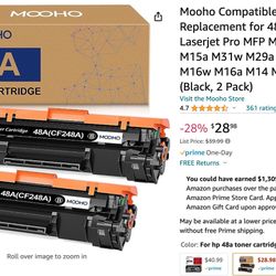 Mooho Compatible Toner Cartridge Replacement for 48A CF248A for Laserjet Pro MFP M15w M29w M28w M15a M31w M29a M28a M30w M16w M16a M14 M17 Laser Print$20Los Angeles, CA