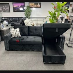 Velvet Sectional Sofa With Storage Chaise And Pull Out Bed $439Inglewood, CA