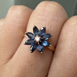 Vintage Solid 14k Gold London Blue Topaz Diamond Flower Ring $320Pasadena, CA