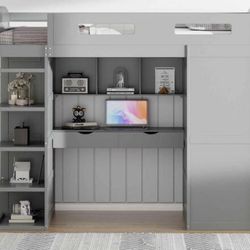 Twin Size Loft Bed with Desk, Wardrobes, 4 Drawers and 4 Shelves-Gray$300Los Angeles, CA