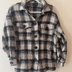 ZARA Tweed Plaid Button Up Shacket Sz M Shirt Jacket Oversized Ivory & Black$15Simi Valley, CA