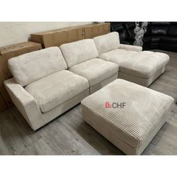 Beautiful! 3-pc Sectional Sofa With Storage Ottoman Ivory Corduroy $465El Monte, CA