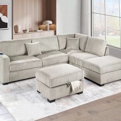 ✅️✅️4 pc grey wide welt cordury fabric upholstered modular sectional sofa with chaise✅️$748Inglewood, CA
