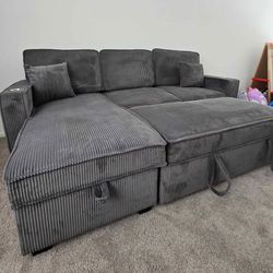 ✅️✅️3 pc Ash grey corduroy fabric sectional sofa with double storage chaise and pop up sleep area in center✅️✅️✅️$698Los Angeles, CA