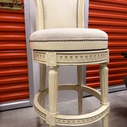 Front Gate -Set of 2 French-Style Swivel Bar Stools – Cream Linen with Carved Detailing$600Hollywood, CA