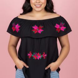 Women’s Huasteca Potosina Hand Embroidered Black Blouse | Cotton Tunic Top L/XL$30Huntington Park, CA