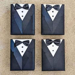 Set of 4 tuxedo suit groomsmen groomsman best man unique memorable wedding gift favor box boxes$100San Mateo, CA