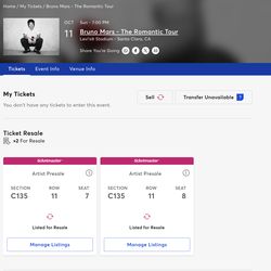 Bruno Mars tickets $650San Bruno, CA