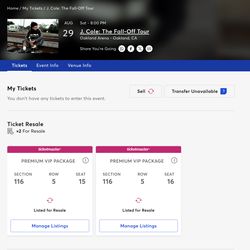 FOR SALE: 2 Premium VIP J. Cole Tickets @ Oakland Arena$700Oakland, CA