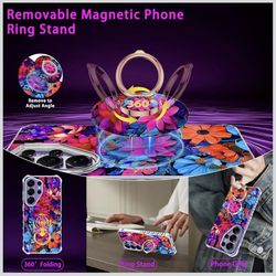 for Galaxy S26 Ultra Case,Magnetic Removable Floral Phone Ring Stand, 360°Rotation MagSafe Stand,Slim Wavy Frame Cases with Cute Flowers for Samsung G$10Oakland, CA