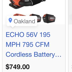 Echo Backpack Blower Battery Powered$500Hayward, CA