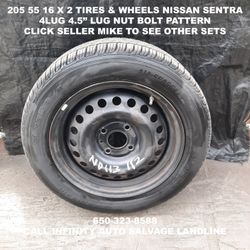 205 55 16 X 2 Tires & Wheels Off Nissan Sentra With 4lug 4.5" Lug Nut Bolt Pattern. $140Palo Alto, CA