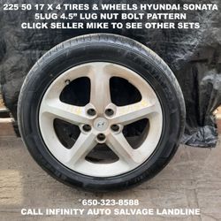 225 50 17 X 4 Tires & Wheels Off Hyundai Sonata With 5lug 4.5" Lug Nut Bolt Pattern. $250Palo Alto, CA