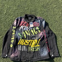 Victorious Men's Casual Air Brushed Graffiti Side Pockets Denim Jacket DK240$20Fremont, CA