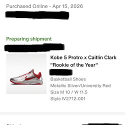 Nike Kobe 5 Protro Caitlin Clark Rookie Of The Year Sizes 9.5, 10 Available $300Concord, CA