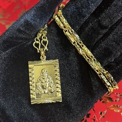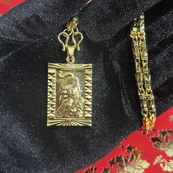 Iced Out Gold Tone Cuban Link Bracelet w/ Saint Figure Pendant$80West Menlo Park, CA