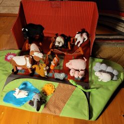 BEAUTIFUL KIDS PLAY FARM HOUSE WITH 17 STUFF PLAY ANIMAL FIGURES & 5 FANCES .
