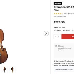 Cremona SV-130 Violin 4/4$160Belmont, CA
