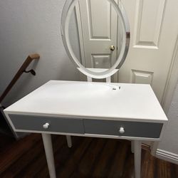 Vanity Desk with mirror with two light settings one brighter and one dimming. It comes with a plug to plug into the wall.$80San Jose, CA