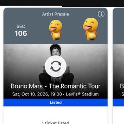 Bruno Mars Levi Stadium Oct 10$1,500Fremont, CA