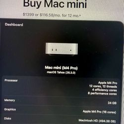 M4 Pro -24gb/512gb - Mac mini - Mint Condition$1,200Livermore, CA