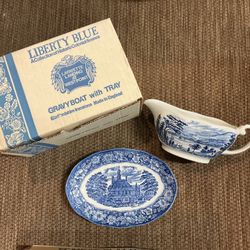 Liberty Blue Staffordshire Ironstone Made In England Gravy Boat With Tray$60Milpitas, CA