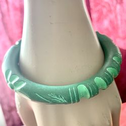 Beautiful Vintage Carved Floral Matte Green Lucite Bangle Bracelet Excellent Condition $30Mountain View, CA