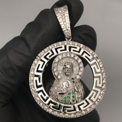 Solid 925 Sterling Silver San Judas St Jude Pendant Clear CZ Iced$200Watsonville, CA