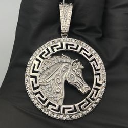 Solid 925 Sterling Silver CZ Horse Greek Medallion Pendant$175Watsonville, CA
