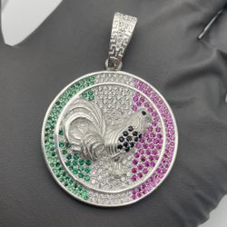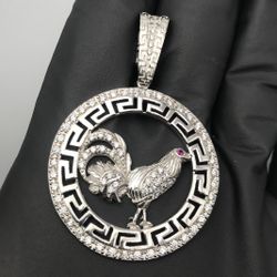 Solid 925 Sterling Silver CZ Rooster Greek Medallion Pendant$140Watsonville, CA