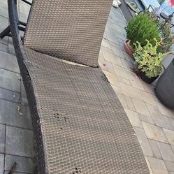Worn outdoor chaise lounge chair, brown wicker material. Has some holes in the wicker on the seat and backrest. Wicker also unraveling a bit on the fr$24San Jose, CA