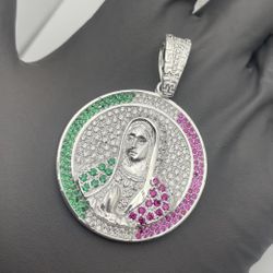 Solid 925 Sterling Silver Tri-Color Virgen de Guadalupe Virgin Mary Iced CZ$215Watsonville, CA