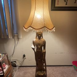 Antique Tall Standing Burmese Buddha Lamp 45” tall (3ft 15inches) 59” tall with shade Has damage to arm but can be repaired. $300Palo Alto, CA