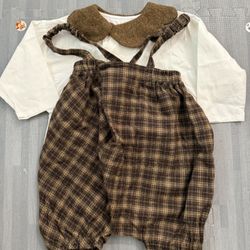 Hello Lupo kids brown plaid suspender shorts & white shirt$70Mountain View, CA