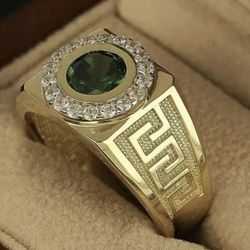 Size 9 Fashion Men's Classic Gold Color Ring Luxurly Inlaid with Green Stone Rings for Men Party Wedding Ring Anniversary Gift$20Belmont, CA