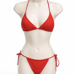 Make a bold statement with this classic red two-piece swim suit. Designed for a flattering fit, it features a timeless triangle top with adjustable st$30Oakland, CA