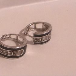 Mens 14mm Black And Silver Greek Key Hoop Earrings$20Hilltop Mall, CA