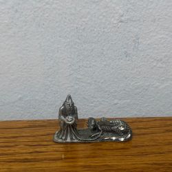 Vintage Chinese 1987 Cuter Pewter Figurine Wizard & Baby Dragon Fantasy Theme Collectible$25Hilltop Mall, CA