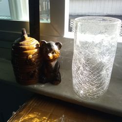 Antique honey pot and crackle glass$8Hilltop Mall, CA