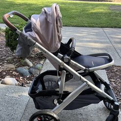 Uppa baby stroller +bassinet (not pictured) , pink color with brown leather accents+ protective net+coffee holder$500San Jose, CA