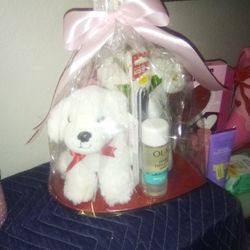 White Puppy, Tulips, Olay toner , La RochePosay Wash.. On A Red Ceramic Heart Tray,❣️$30Santa Clara, CA