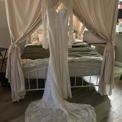 Wedding dress, cardigan, train veil, and scarf$500Fremont, CA