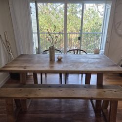 Handmade Wooden Dining Set W/bench & 2 Chairs$250San Bruno, CA