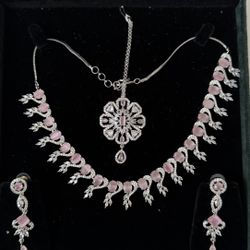 Stunning Pink & Silver American Diamond Necklace Set + Maang Tikka$45Fremont, CA