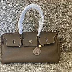 J.CREW Leather Tote Handbag Carryall Double Handles Taupe Gray Large Buckles$25Richmond, CA