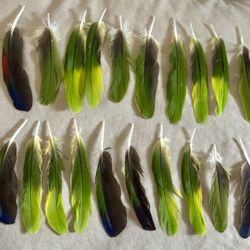 I am Selling. 20 Pieces of Green Amazon Parrot Wing Feathers, some Green/ purple /Black /Red$30Mountain View, CA