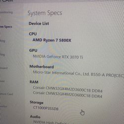 Gaming PC (GeForce RTX 3080) $1,050San Francisco, CA