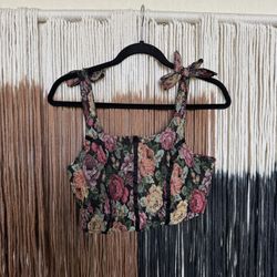 Floral corset top with adjustable ties/bow detail and zipper closure on the back; perfect condition$10Fowler, CA